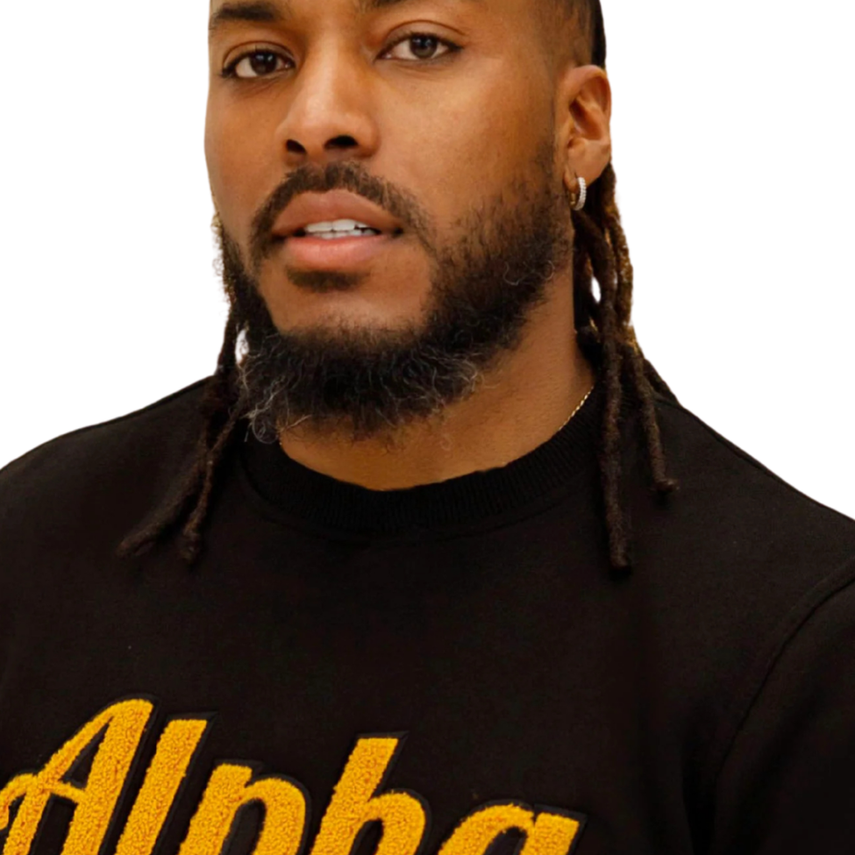 Alpha Year Sleeve Chenille Sweatshirt Vêtements grecs personnalisés Noir Or Lettres brodées Fraternité Pullover Vente en gros