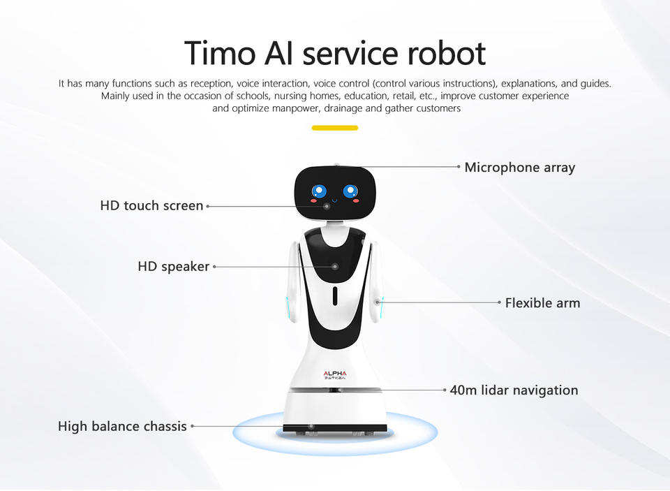 Robot de réception intelligent Alpha AI Timo, robot d'hôtel, robot serveur