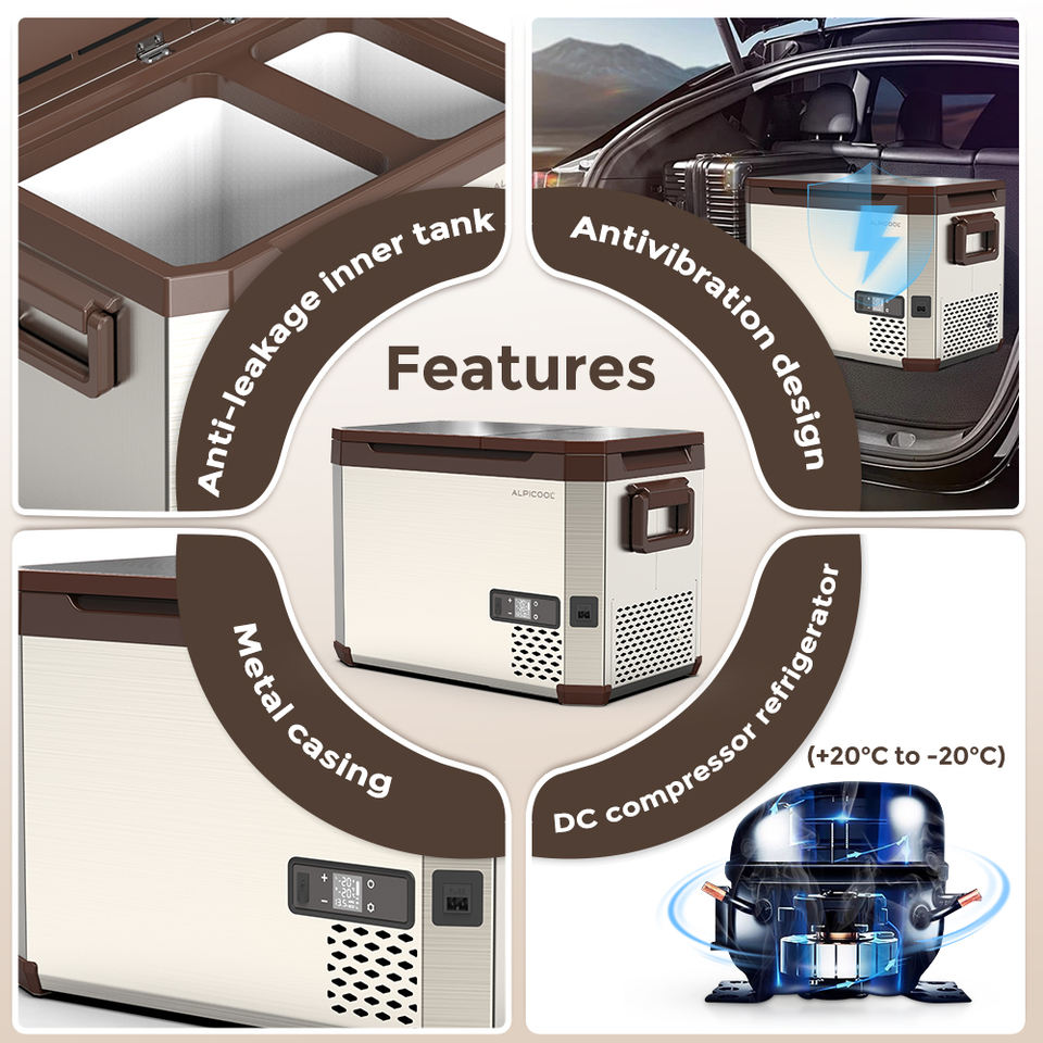 Glacière de voiture Alpicool série AH à double zone, mini-congélateur portable à batterie, réfrigérateur à compresseur pour les voyages et les activités de plein air