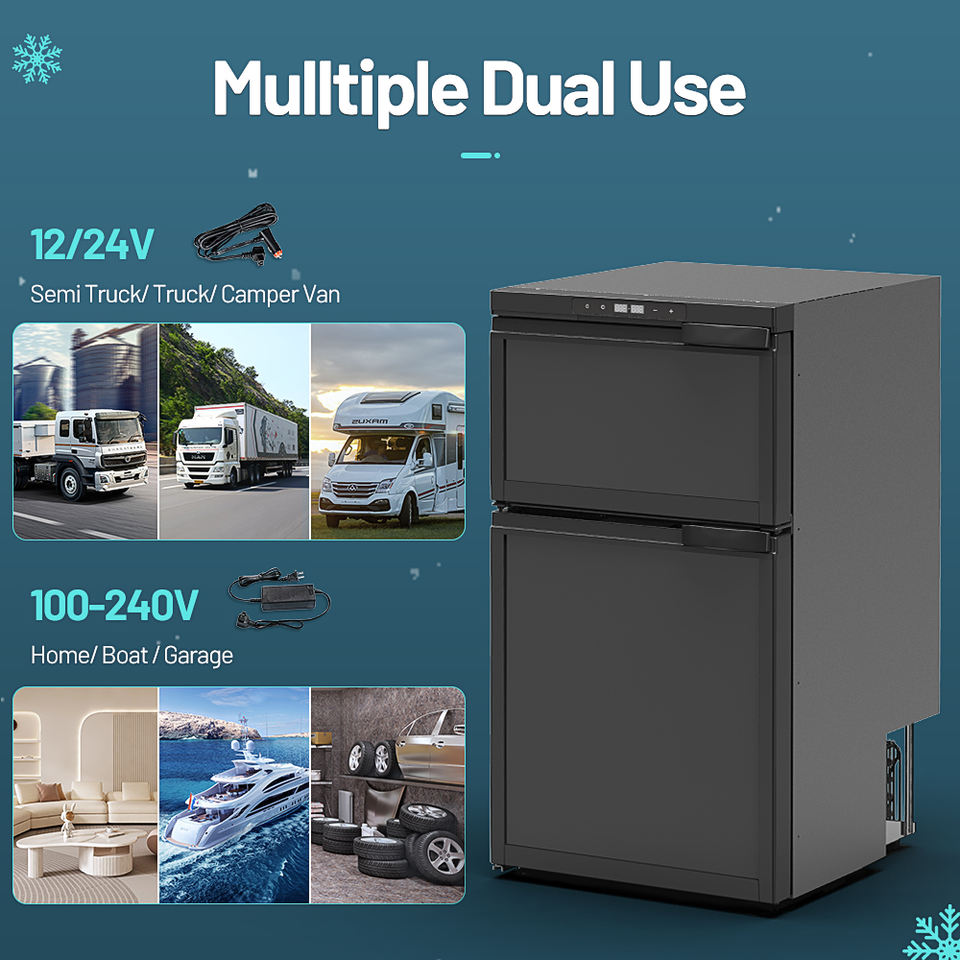 Alpicool DR80, refroidisseur portable AC/DC à double usage, réfrigérateur à double zone, réfrigérateur portable pour voiture, congélateur électrique 12V pour la maison