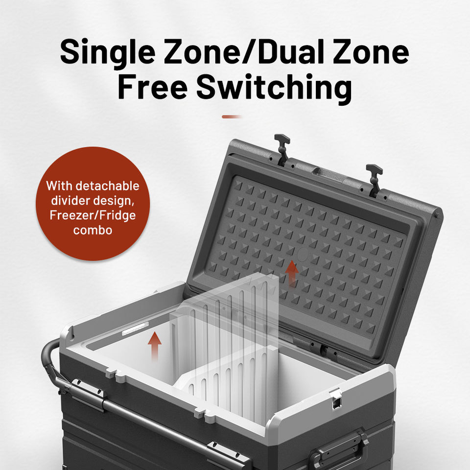 Alpicool TDW50 Congélateur à compresseur double zone 12V double usage Réfrigérateur à énergie solaire Réfrigérateur portable pour camping et voiture