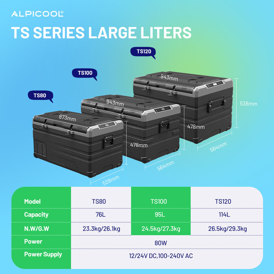 Réfrigérateur-congélateur de voiture Alpicool TS100 100L, compresseur de camping-car 12v 24v avec compresseur Secop