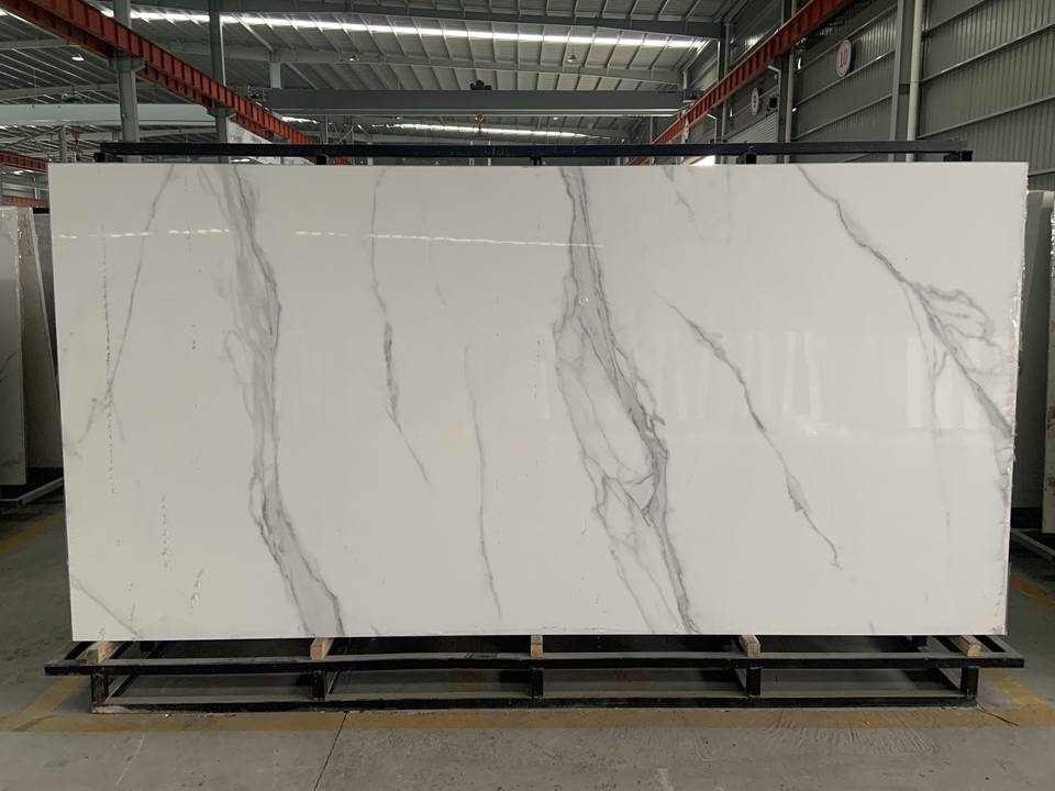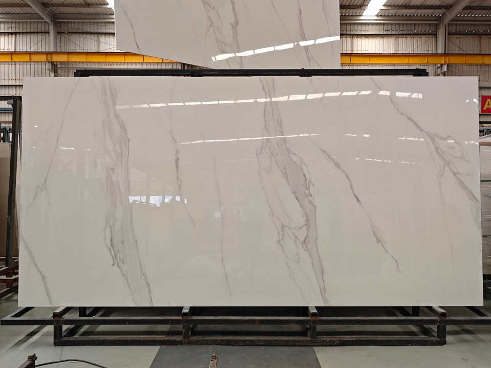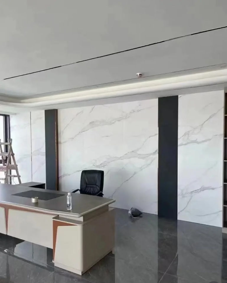 Carreaux de pierre frittée aspect marbre blanc Alpes, polis, imitation pierre, panneau mural, extérieur, chambre, hall, design moderne, salle à manger extérieure