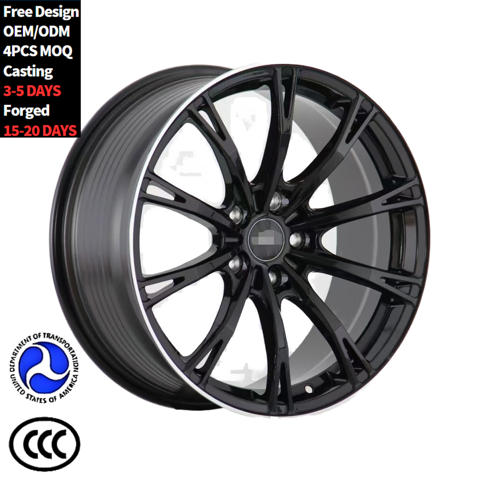 Jantes de voiture en alliage d'aluminium de 18, 19 et 20 pouces avec bordure usinée noir brillant 5X112PCD pour modèles AUDI A3 A4 A5 A7 VW