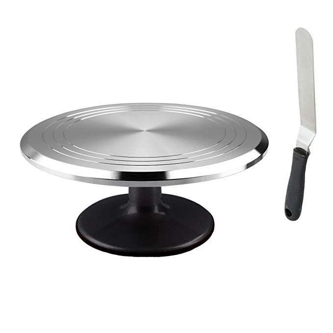 Aluminium Alloy Cake Turntable 12Inch Non-Slip Rubber Bottom Revolving Dessert Professional Rotating Cake Stand Base for Cake