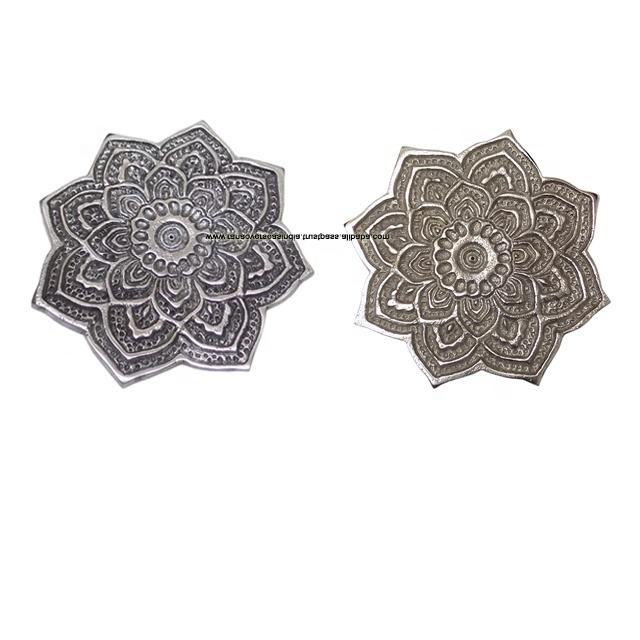 Plaque d'encens en aluminium Mandala Fleur pour yoga, aromathérapie et parfum d'intérieur