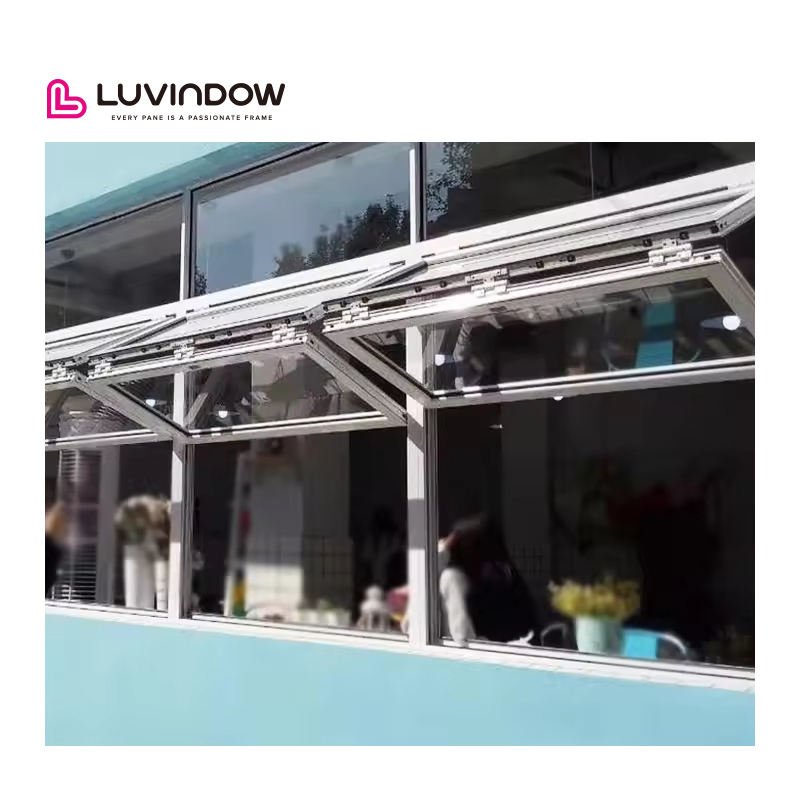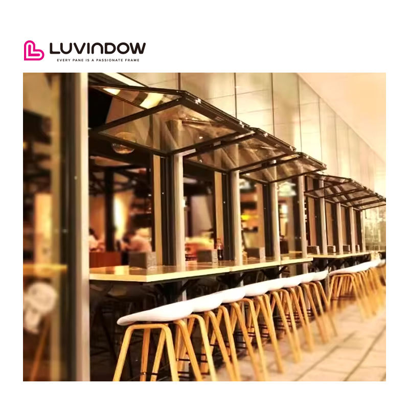Fenêtre pliante en aluminium Fenêtres en verre pliantes Fenêtres verticales américaines à enroulement Fenêtre pliante à grille pour bar boutique café