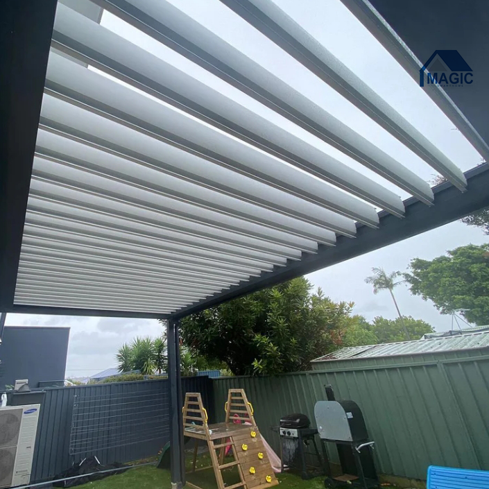 Système de couverture de pergola bioclimatique en aluminium avec côtés rétractables Toit à lames extérieur étanche Cadre à revêtement par poudre