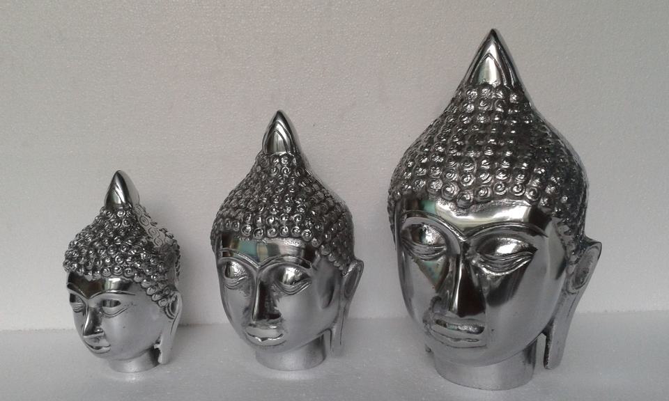 Statue tête de bouddha de style religieux en métal coulé-aluminium
