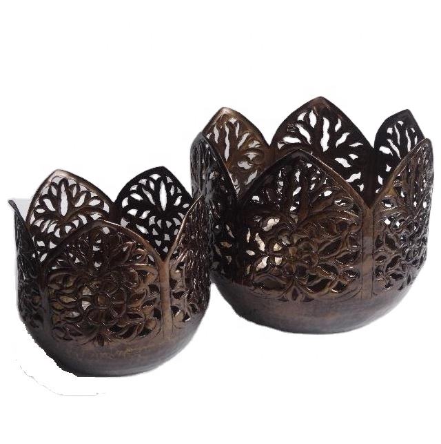 Bougeoir en aluminium avec motifs taillés à la main en finition laiton antique Bougeoirs à bougies chauffe-plat Noël Festive Home Decor