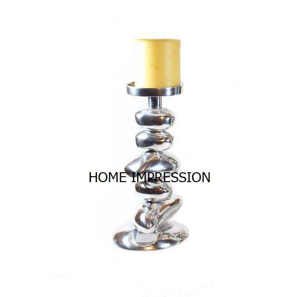 Bougeoir de luxe en aluminium moulé nickelé avec pierres métalliques faites à la main Bougeoir en métal argenté pour fournisseurs grossistes