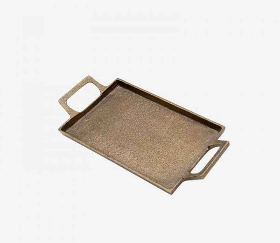 Plateau de service en aluminium martelé rectangulaire au design de luxe doré avec poignée Plateau décoratif pour mariage et décoration de table
