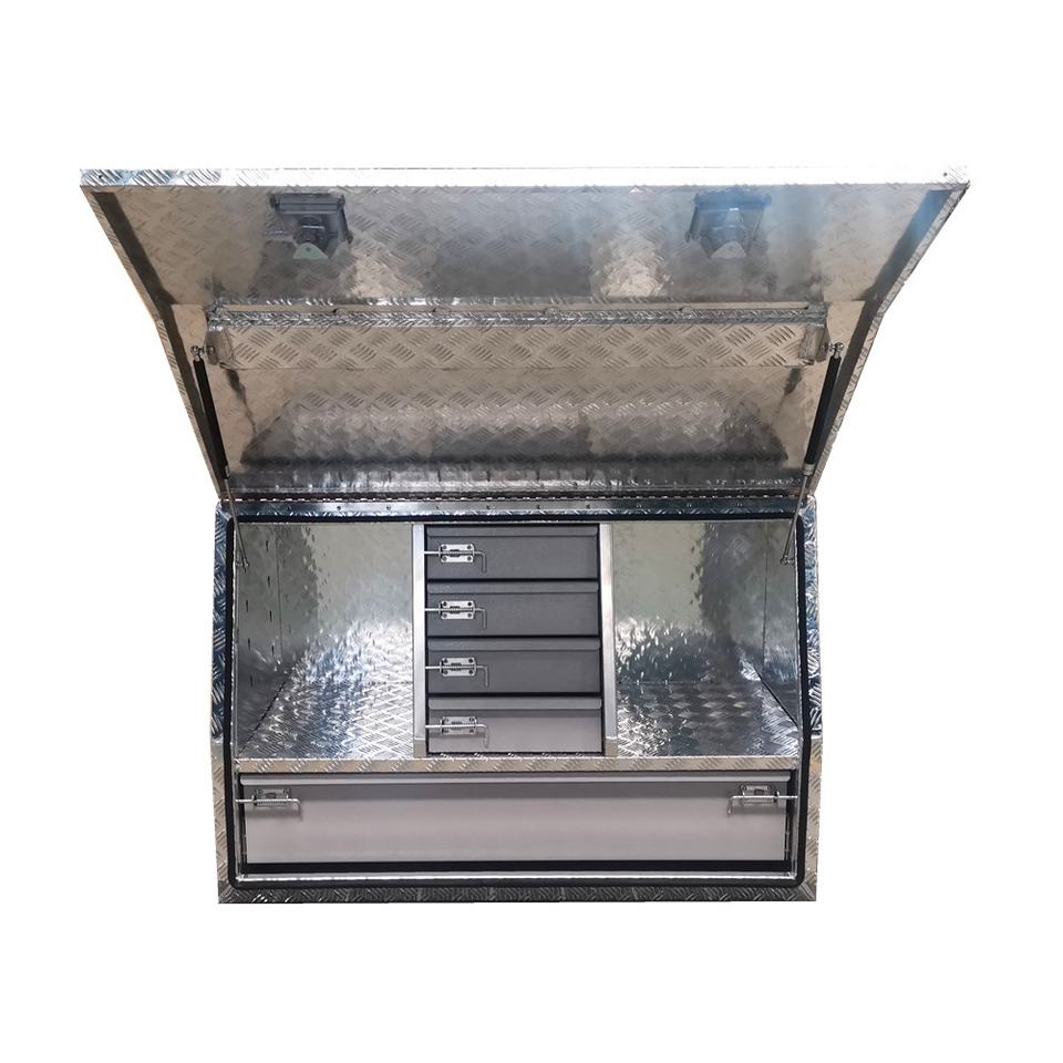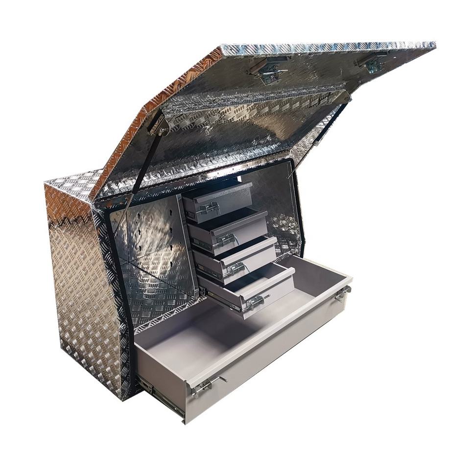 Boîte à outils camion de rangement, plaque de damier en Aluminium avec ouverture latérale, coffre à outils