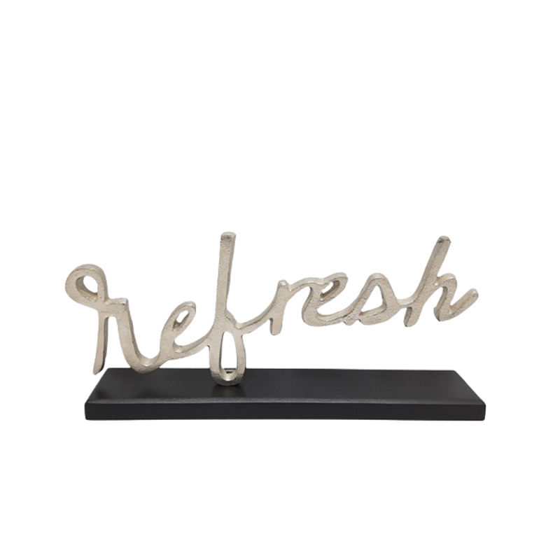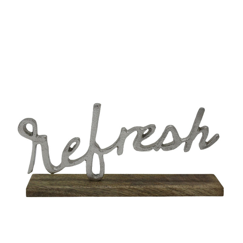 Rêve décoratif en aluminium avec base en bois rectangulaire couleur nickel brut argent dessus de table et décoration de la maison