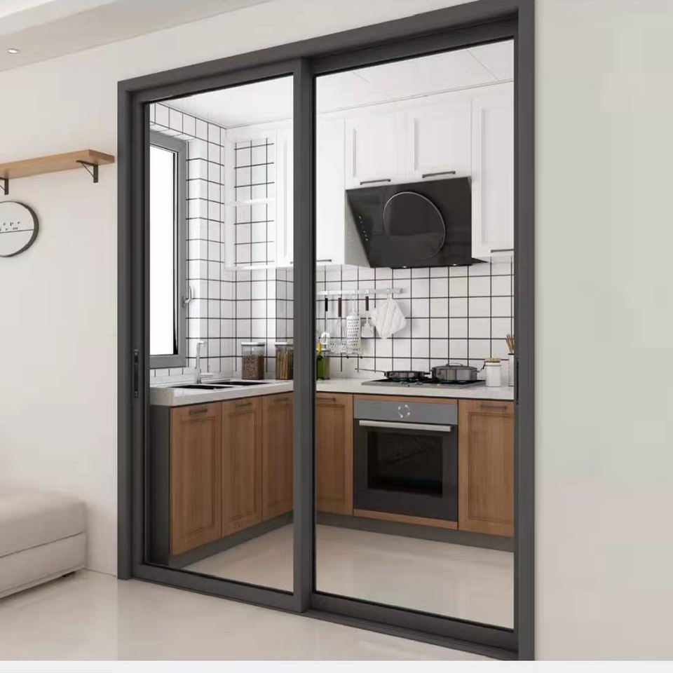 Porte coulissante à double ouverture en aluminium, porte intérieure en verre aluminium PT / Pd pour cuisine et salle de bain