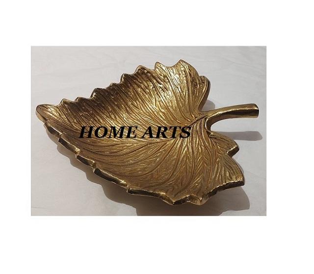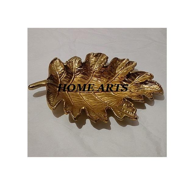Plat de service pour fruits secs en aluminium couleur or, fait main, en forme de feuille, idéal pour les en-cas, best-seller