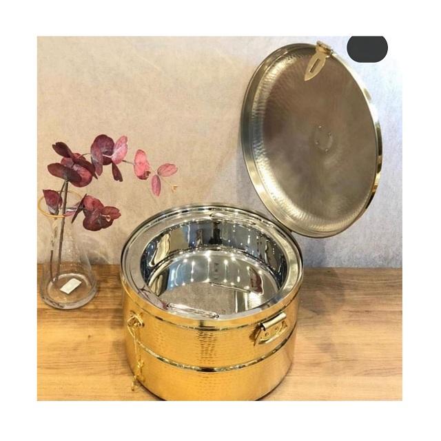 Ensemble de deux plats chauffants en aluminium martelé, forme ronde, plats chauffants pour aliments, provenant du fabricant en Inde