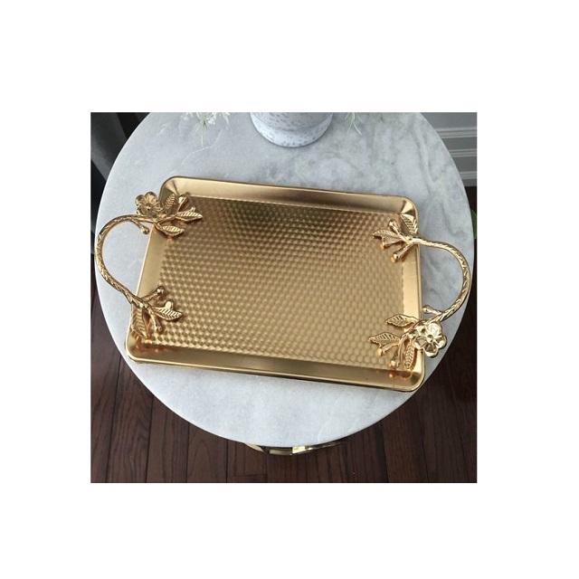 Plateau de service en aluminium martelé couleur or avec des collations de qualité supérieure, plateau de service pour le thé, le café et les aliments à vendre