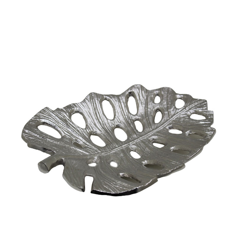 Plat de service en aluminium en forme de feuille, couleur or, pour hôtel et salle à manger