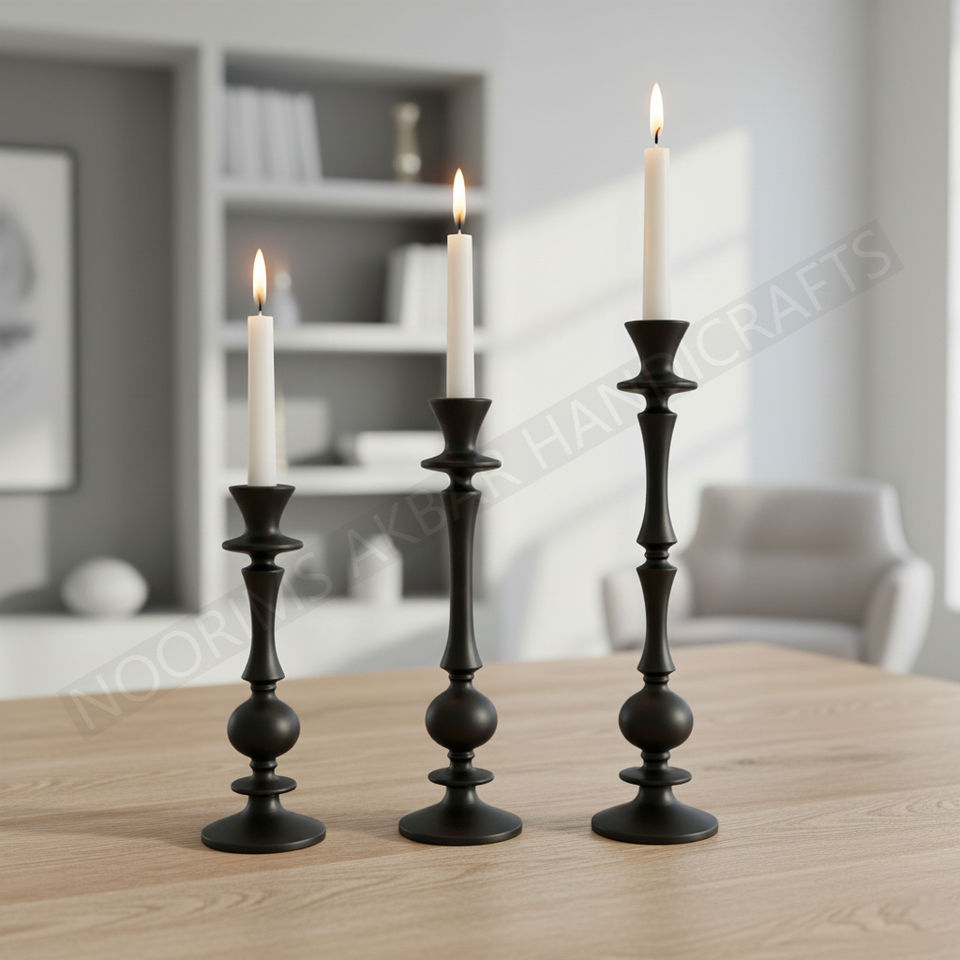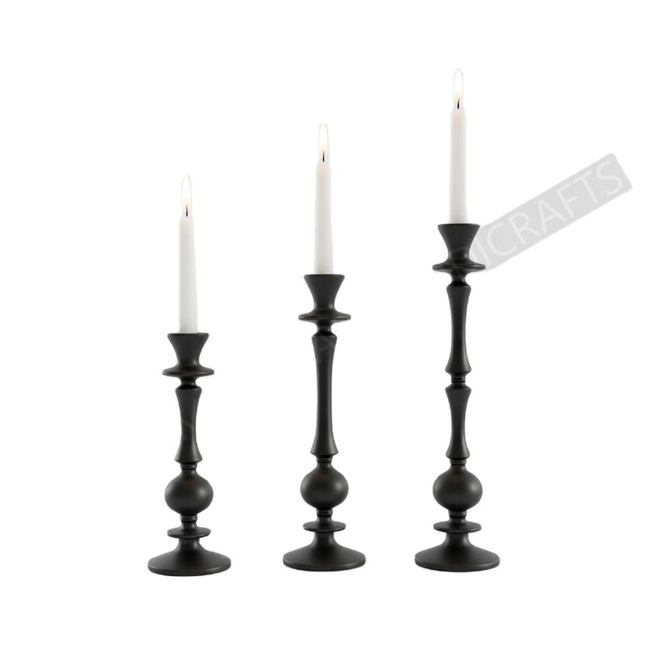 Aluminium Metal Black Candle Holder Stand Candelabra with Holder Funnel Candlestick Pillar Holder Manufacturer Exporter