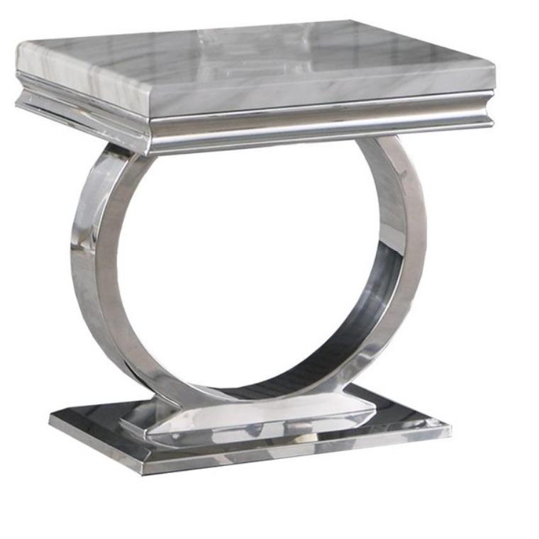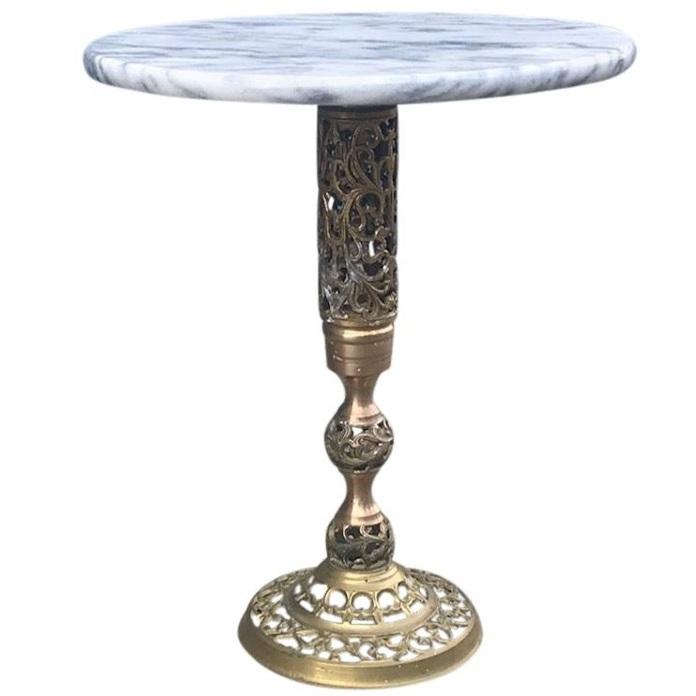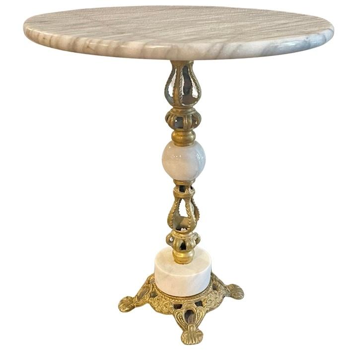 Table basse en aluminium et métal Plateau en marbre Forme arrondie Faite à la main Décorative pour la maison Meubles de chambre Table centrale