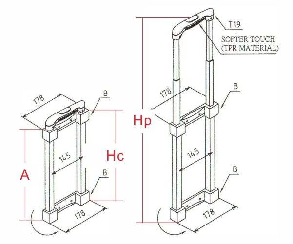 Poignée rétractable en aluminium pour sac de valise de shopping
