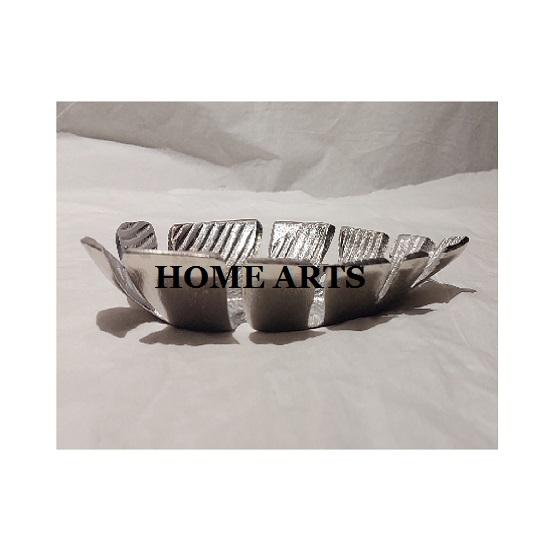 Plat de service à dessert en aluminium couleur argent Plat de service alimentaire en forme de feuille de taille personnalisée pour le restaurant