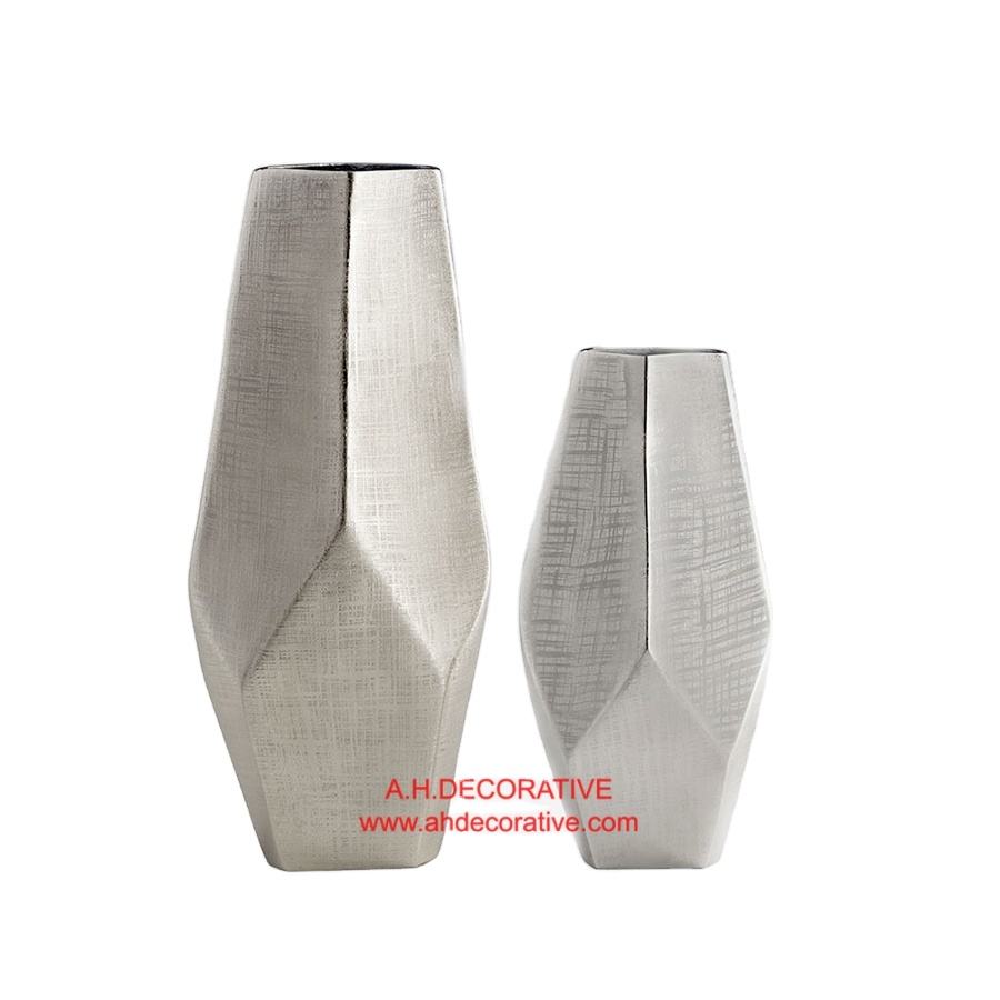 Vase à fleurs en forme d'hexagone en aluminium plaqué argent pour centre de table de mariage, décoration de la maison, vase à fleurs et pots