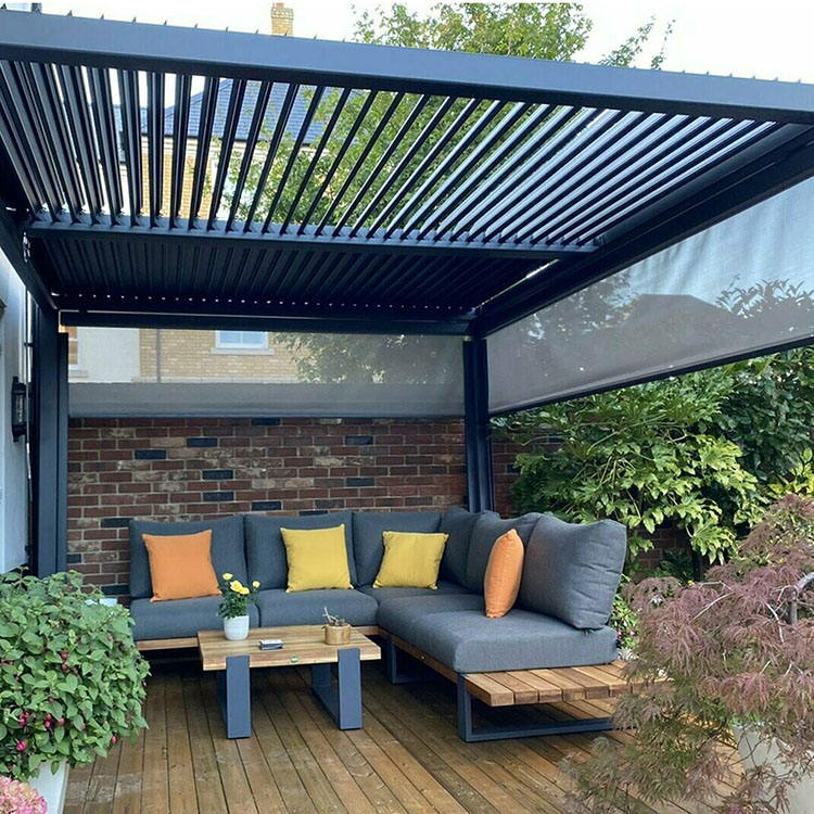 Système de toit d'une pergola de jardin coulissant en aluminium, livraison gratuite, avec rideau latéral, pergola