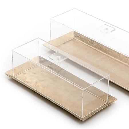 Plateau à dessert en aluminium avec couvercle en acrylique, lot de 2 tailles différentes, plateau à chocolats pour accessoires de table