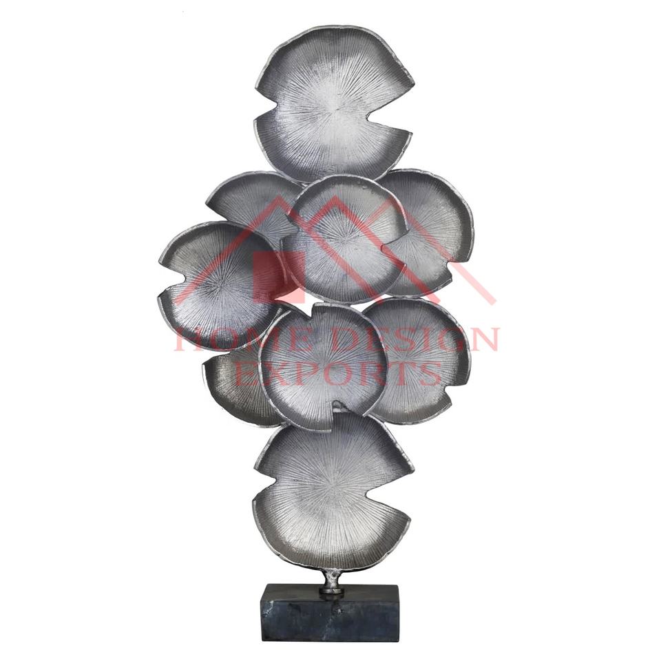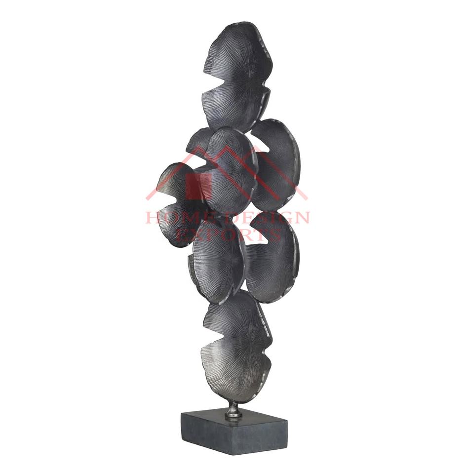 Aluminium Table Sculpture/Latest Design Tall Abstract Sculpture on Marble Base/Golden Ginkgo Leaf Sculpture for Wedding Decor