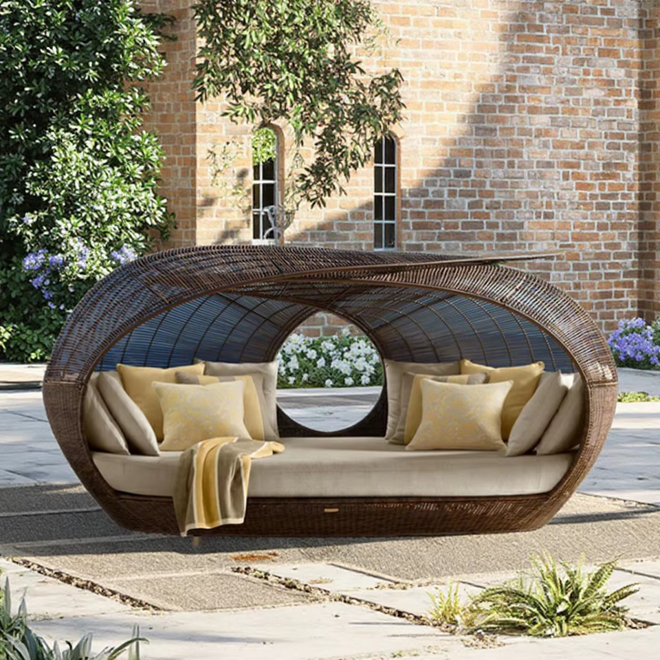 Coussin imperméable en aluminium, tissu de rotin tissé en métal, jardin patio lit canapé auvent lit de jour avec gigogne