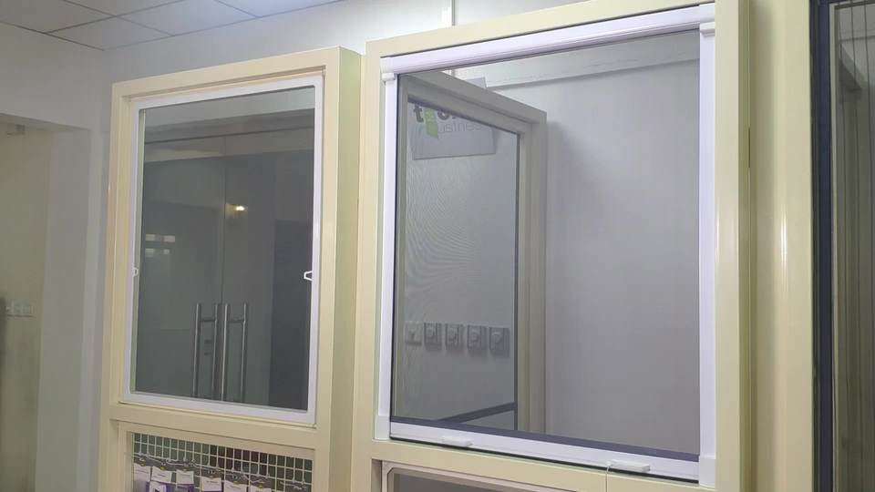 Fenêtres en aluminium avec moustiquaire et mécanisme d'enroulement du gril pour moustiquaire rétractable