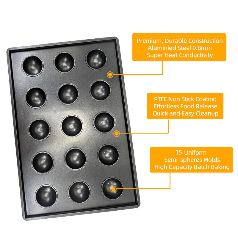Moule à pâtisserie en acier aluminisé pour 15 demi-sphères, plateau de cuisson pour cupcakes et muffins