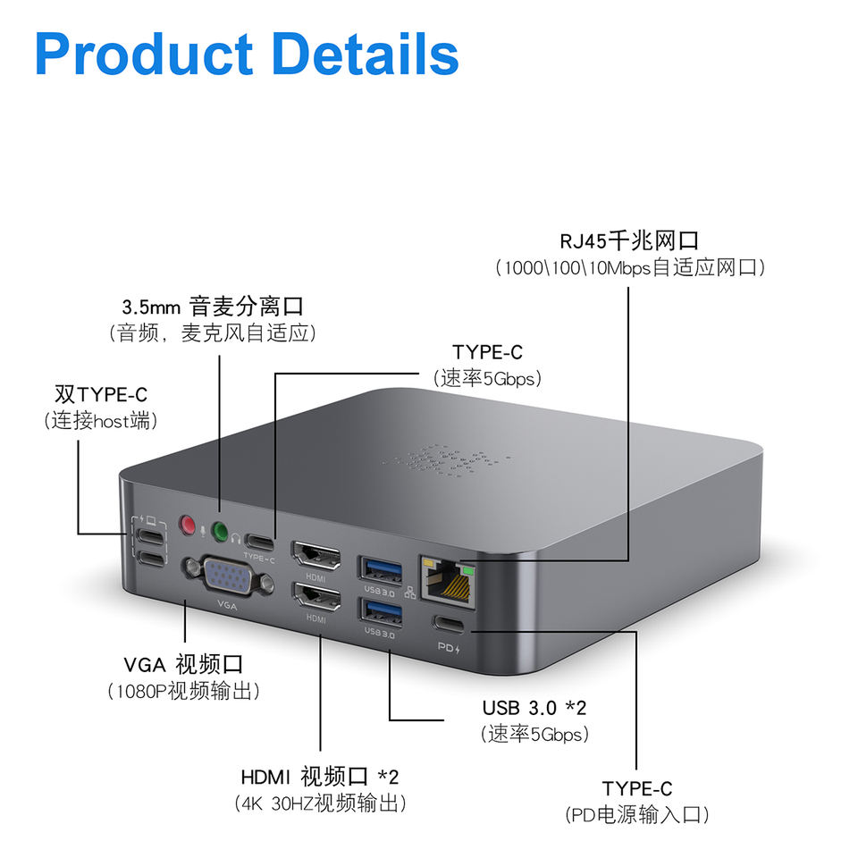 Fonctionnalité clé 2:Hub Type-C en aluminium OEM 18 en 1