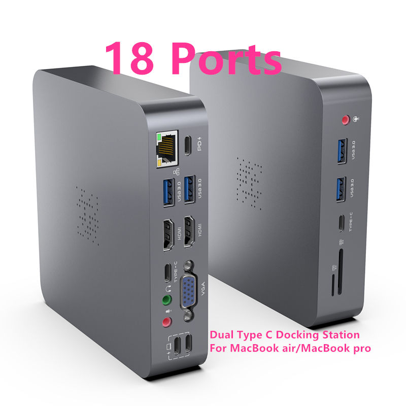 Aluminium 18 en 1 Type c Hub Multi Function hdmi Vga Adapter 4 Usb RJ45 PD Charger Docking Station pour MacBook Pro