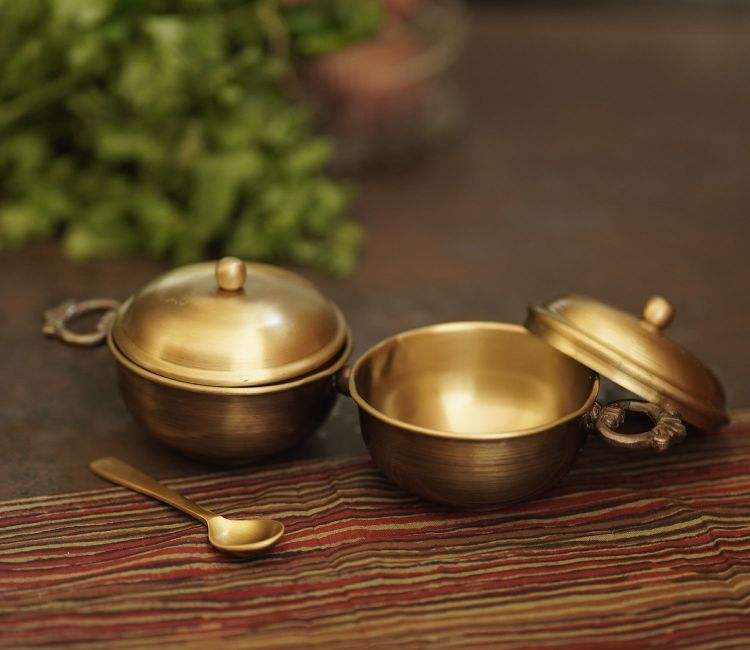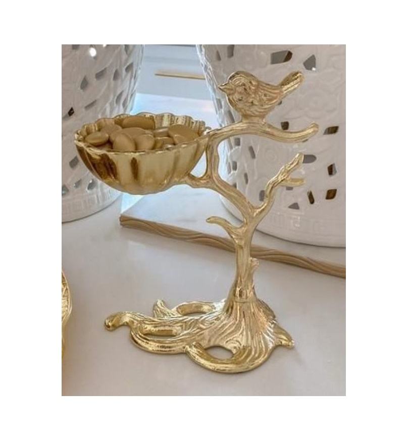 Bol de cuisine décoratif en métal gaufré plaqué or à 2 sections en aluminium avec motif en laiton Bol de service en métal de designer