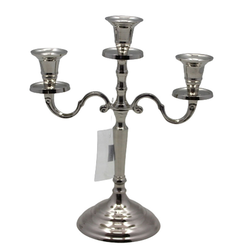 Bougeoir à 3 bras en aluminium Couleur argent nickelé Bougeoir au design moderne et bougeoir pour décoration de mariage