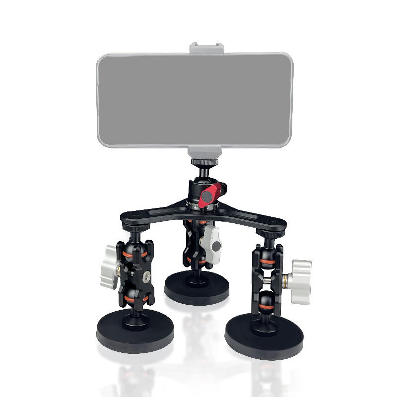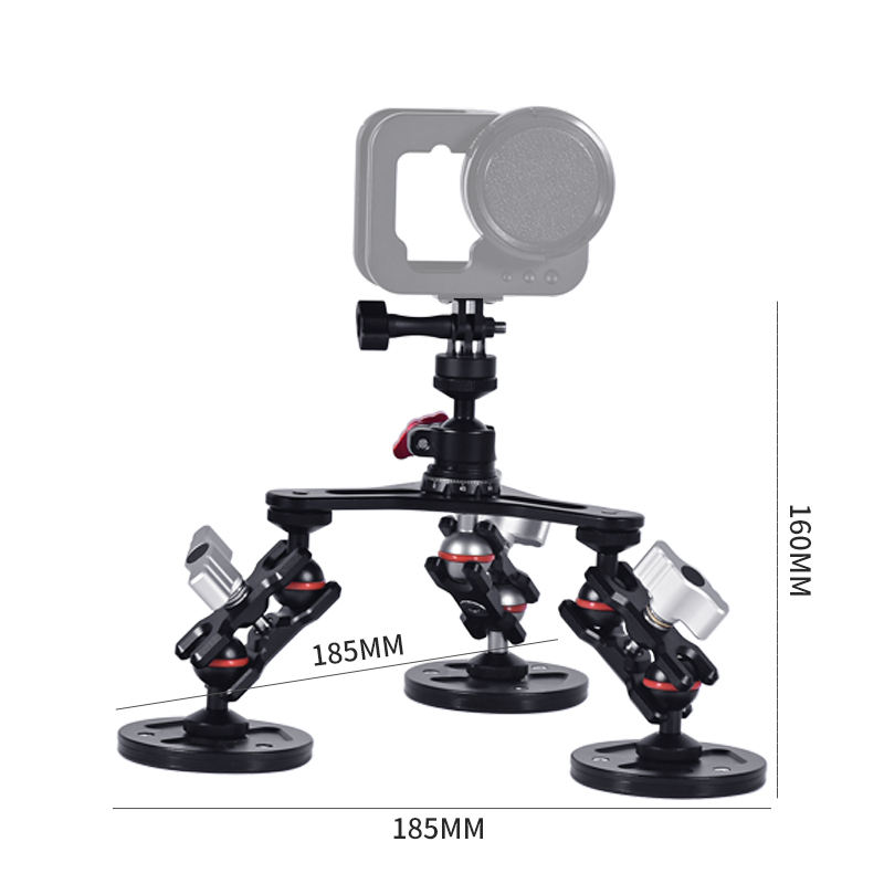 Support de caméra magnétique pour voiture en alliage d'aluminium YuanYu, tête sphérique, trois bras magiques, compatible avec les modèles Hero 6/7/8/9/10