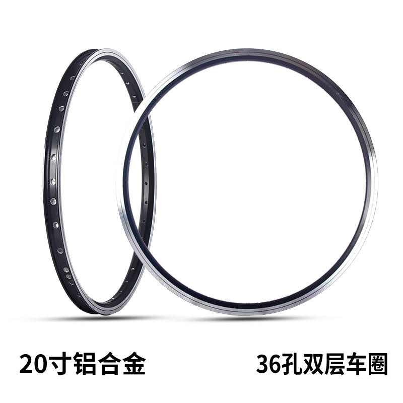 Jante de vélo en alliage d'aluminium double couche 20 pouces 36 trous Frein à disque Frein V Noir/Argent Clincher pour vélo de ville