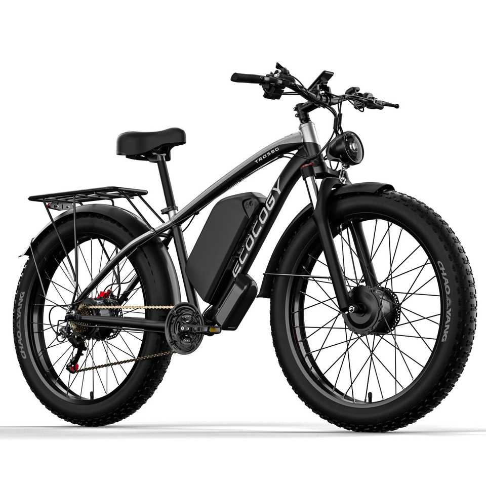 Vélo de montagne électrique à cadre en alliage d'aluminium, pneus larges de 26 pouces, frein à disque hydraulique, 7 vitesses, moteur double 4000W, 52V, VTT adulte