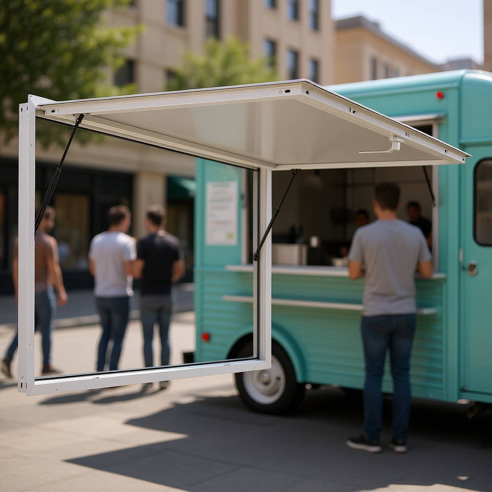 Cadre en alliage d'aluminium 60x36 pouces, fenêtre de concession avec fente pour verre, auvent résistant à la pluie pour les camions de restauration