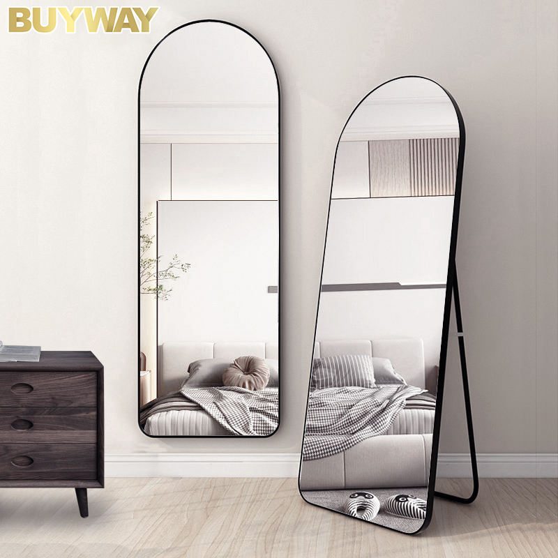 Miroir sur Pied Entier en Alliage d'Aluminium, Grand Miroir Corporel pour Habillage, Forme Arquée, Vente en Gros