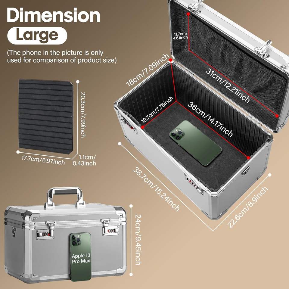 Boîte de rangement verrouillable en alliage d'aluminium, étanche, portable, à code, pour médicaments, argent, téléphone, objets de valeur, sécurisée pour enfants, réutilisable