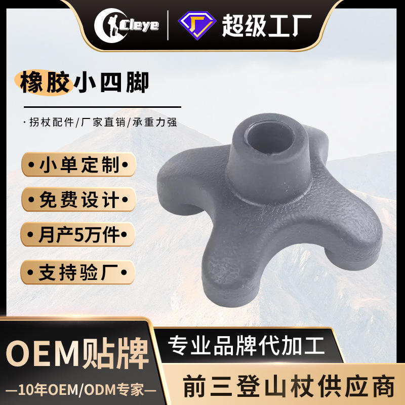 Base de bâton de marche en alliage d'aluminium avec embouts en caoutchouc antidérapants, grand support à quatre pieds pour la randonnée en plein air, 17 cm