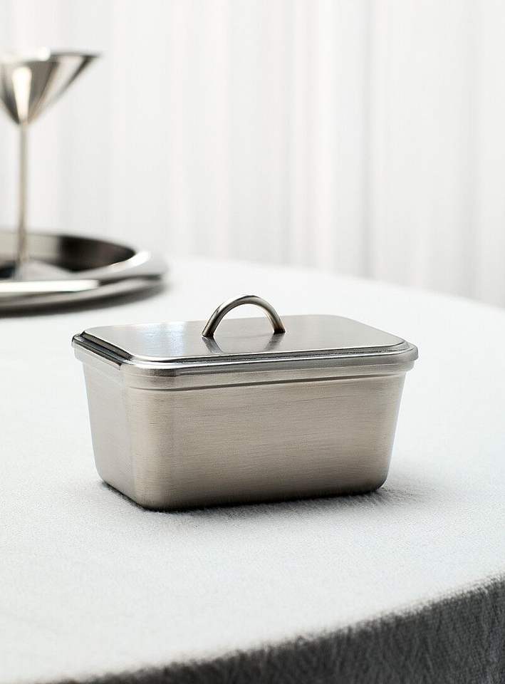 Beurrier en aluminium pour le rangement sur le comptoir de cuisine, offrant une construction durable et une présentation élégante et moderne sur la table à manger