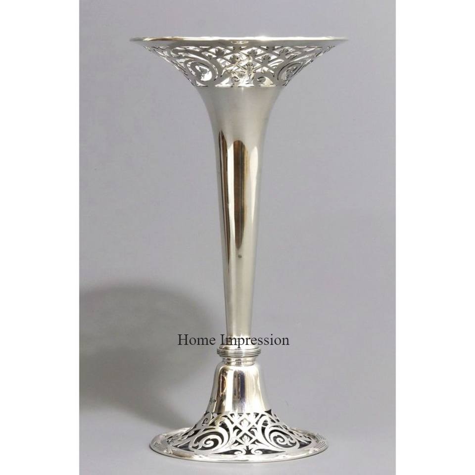 Finition en aluminium coulé couleur argent brillant poli miroir centres de table de mariage et décoration de table trompette Vases fournitures