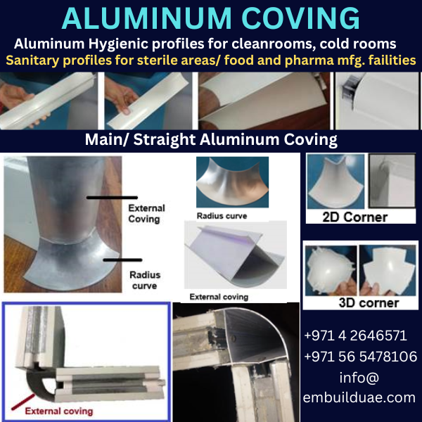 Plinthes en aluminium / Profils hygiéniques en aluminium pour salles blanches et chambres froides / Profils sanitaires en aluminium Dubaï/Oman/Qatar/Koweït
