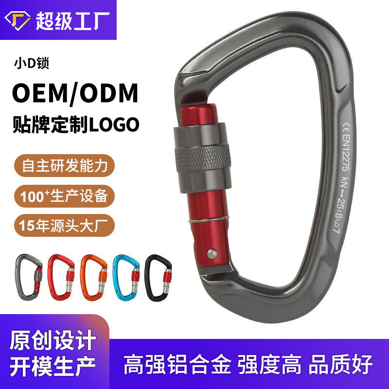 Mousqueton de sécurité en aluminium de type D, 63g, pour escalade en plein air, hamac et corde
