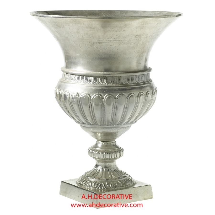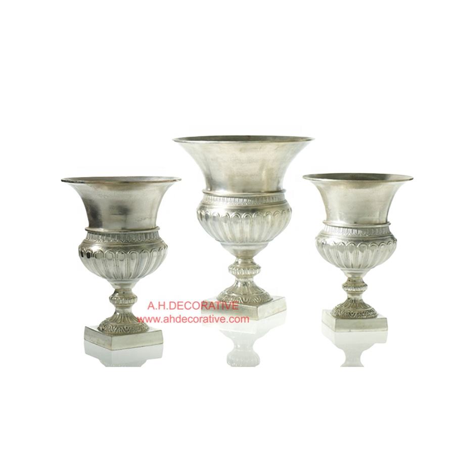 Ensemble de 3 vases de fleurs pu, Design gaufré en aluminium, plaqué argent, ensemble de 3 vases de fleurs brillantes et décoratifs au sol